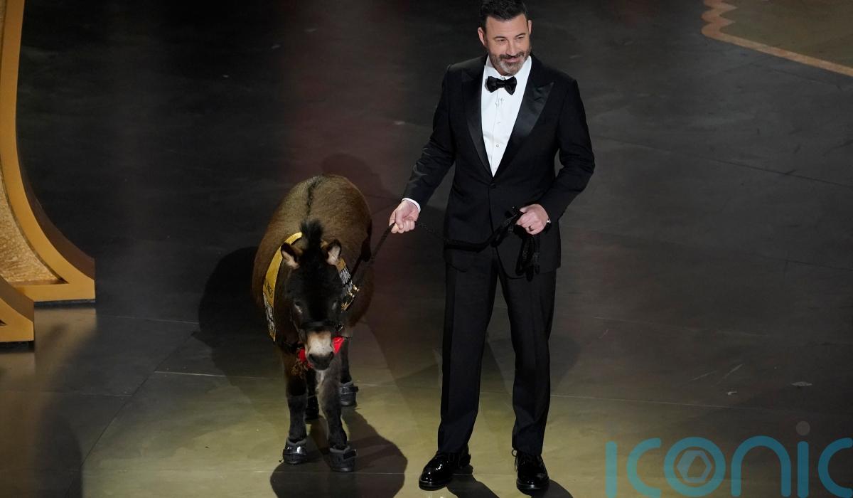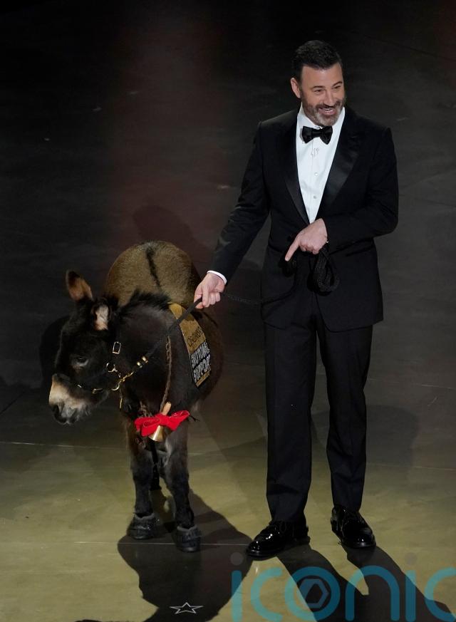 Jimmy Kimmel was joined on stage at the Oscars by an “emotional support donkey” bearing the same name as the four-legged star of The Banshees of Inisherin.