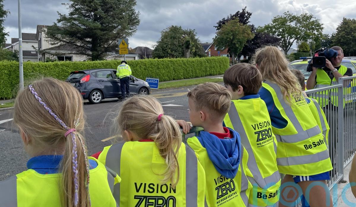 At Gaelscoil Chnoc Liamhna in Knocklyon, Dublin, Gardai urged road users to be careful on the roads and to be aware of children alighting from buses.