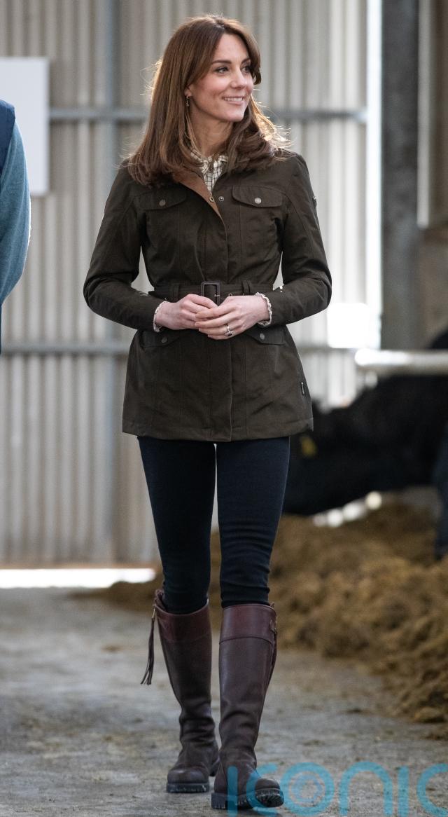 During the busy trip, Kate visited the Teagasc Research Farm in Carlow, and wore the Friel Utility Jacket in Olive from Dubarry of Ireland. Underneath was a green gingham shirt, black skinny jeans and knee-high Penelope Chilvers tassel boots.