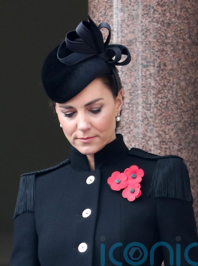 She donned a black velvet headpiece by the Irish designer with a dramatic bow motif for the 2020 Remembrance Sunday service at the Cenotaph in London, paired with an Alexander McQueen coat with intricate shoulder detailing.