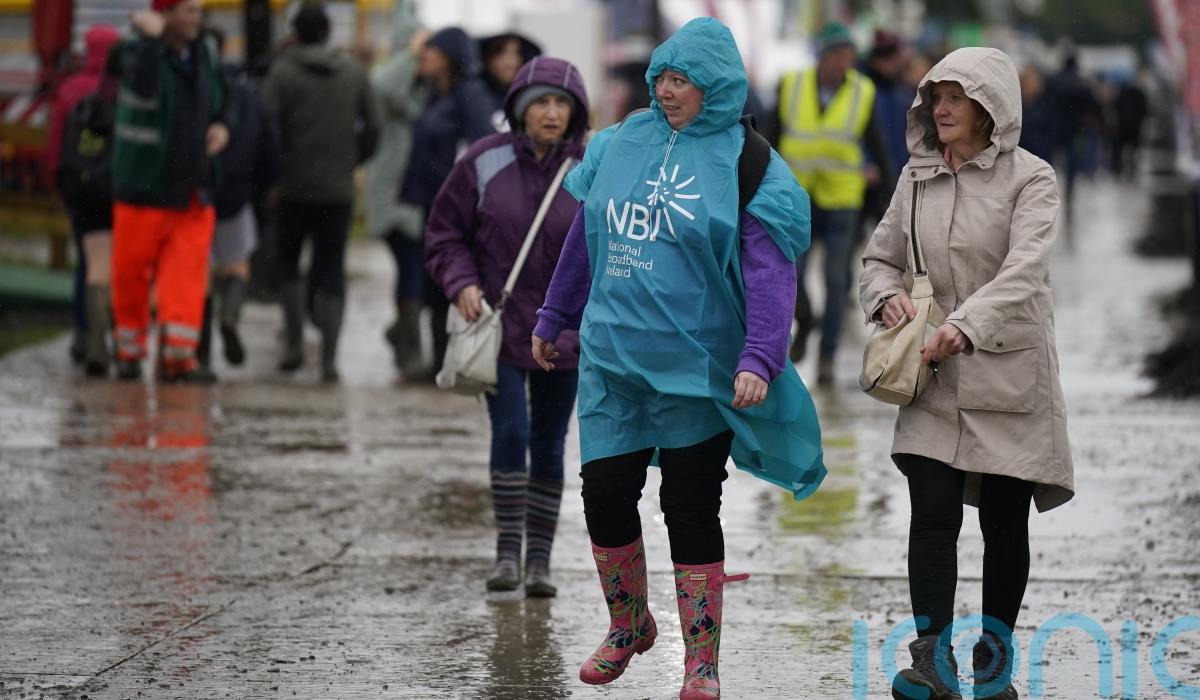 Thousands of farmers and families are braving damp and windy weather to trudge across muddy farmlands for a major showcase of farming and rural life.