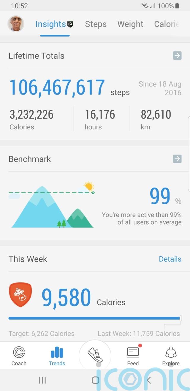His walking app estimates he has burned off more than three million calories in seven years.