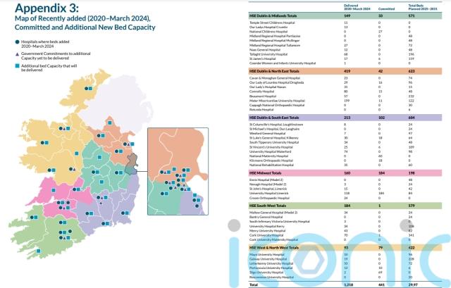 The Department of Health said the new beds represented “a total planned capacity increase of 3,438 net additional acute in-patient beds and 929 replacement acute inpatient beds over the period 2024 to 2031”.