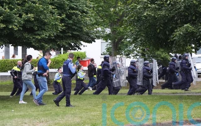 The violence flared in the morning after preparations were made to start work at a disused building which is to be redeveloped to house asylum seekers.
