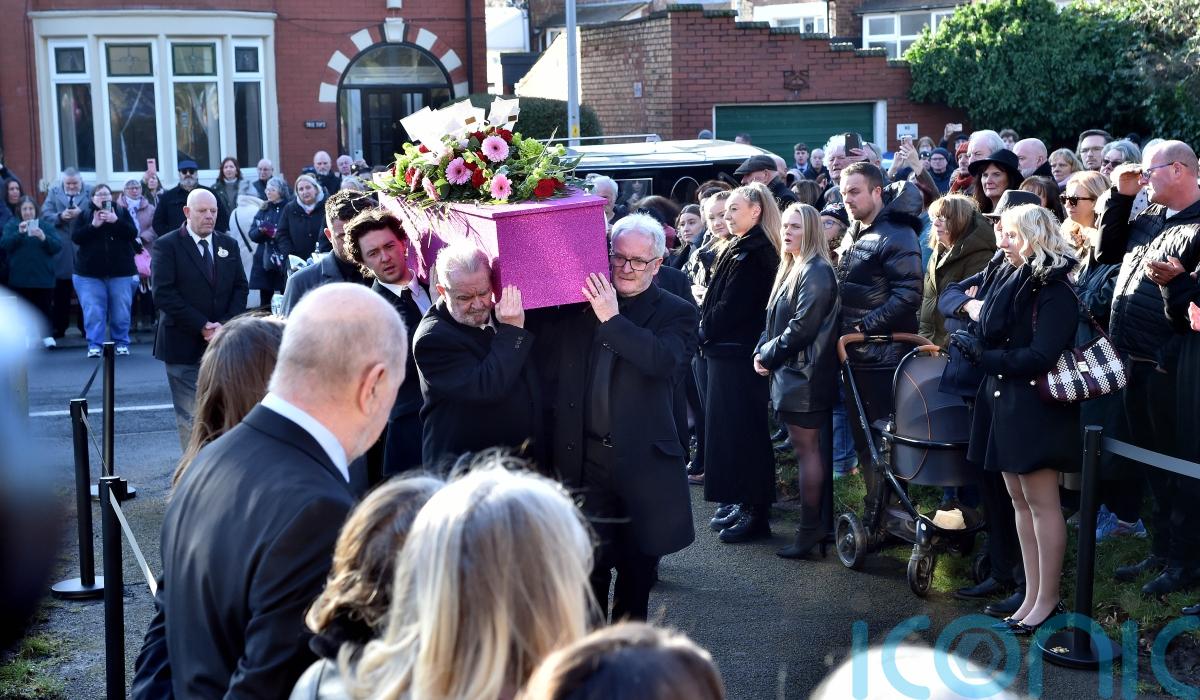 The singer’s pink sparkly coffin was carried from St Paul’s Church in Blackpool to applause from members of the public who had lined the streets while To Where You Are by Josh Groban was played.
