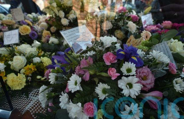 A framed photo of Linda was placed on an easel outside the church with mourners signing a book of condolence.