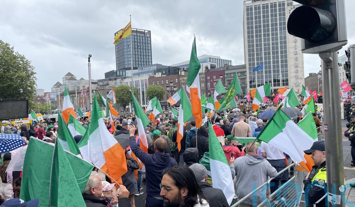 The anti-immigration protest marched down O’Connell Street and turned left at O’Connell bridge before continuing along the quays.