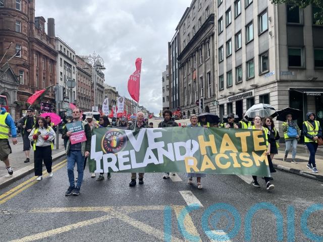 Several protesters carried signs saying: “Blame the Government, not migrants”; and: “Dublin stands against racism”. They also chanted: “Say it loud, say it clear, refugees are welcome here.”