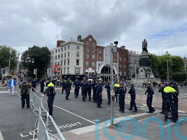 O’Connell Bridge was closed for a time on Sunday afternoon as the Gardai erected extensive barriers to separate the two crowds.