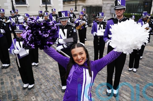 The band, dressed in the Northwestern Wildcats purple colours, played songs such as Uptown Funk and The Time Warp.
