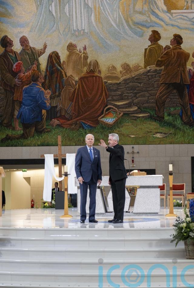 The US president paid a visit to the Knock shrine in Co Mayo, where he had an emotional unplanned meeting with a priest who gave the last rites to his son.