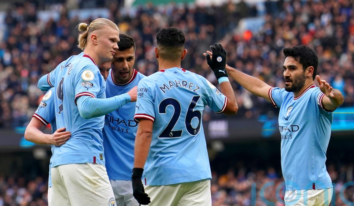 Haaland netted his fourth treble of the campaign – taking his tally for the season to a remarkable 31 in 26 games in all competitions – as the champions responded strongly to their manager’s midweek complaints.
