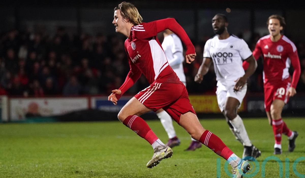 Tommy Leigh’s added-time penalty edges Accrington past Boreham Wood in FA Cup