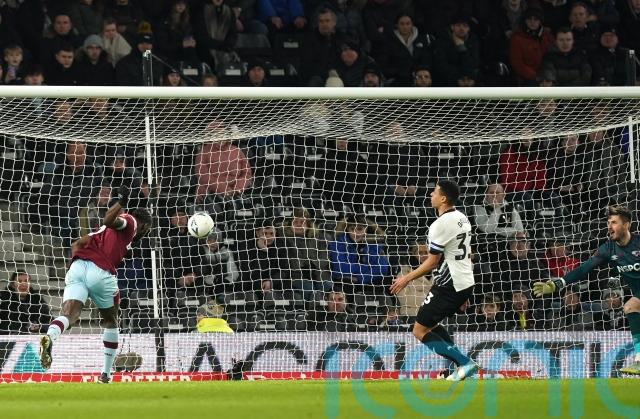 Antonio’s ball over the top caught Derby flat-footed and Bowen volleyed home Tomas Soucek’s neat headed pass from six yards.