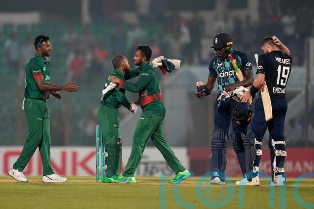 While Chris Woakes provided resistance with 34, Ahmed became Shakib’s 300th ODI victim by slamming to short midwicket for two as England slid to a first defeat in four ODIs.