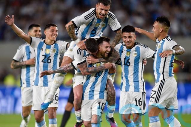 Manager Lionel Scaloni named the same starting line-up as the World Cup final with the entire squad from Qatar posing for pictures in front of a replica trophy before kick-off.