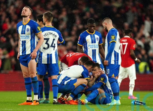 Solly March missed the vital kick for Roberto De Zerbi’s team after both sides converted their first six penalties, as United booked their second domestic final of the season following their Carabao Cup win in February.