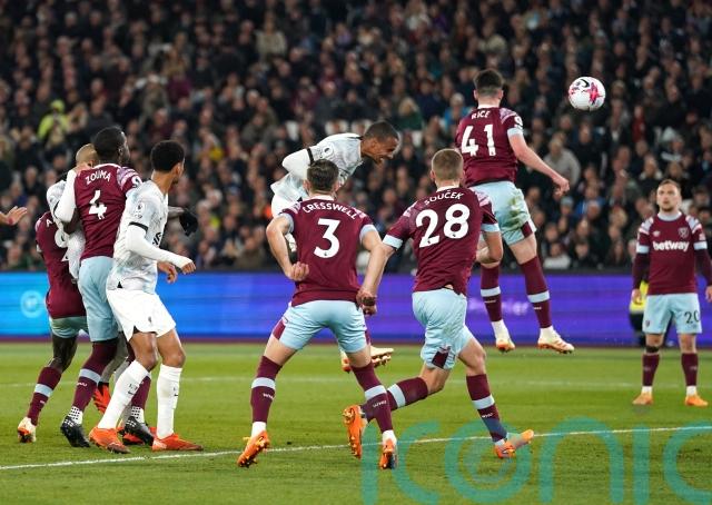 The hosts thought they had gone back in front when Bowen raced on to Paqueta’s through ball, cut inside Van Dijk and fired into the corner, but a VAR check showed the winger was marginally offside.