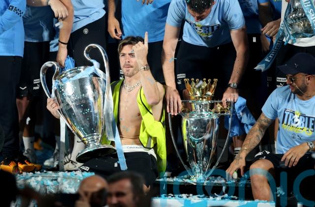 Jack Grealish, Kyle Walker, Phil Foden, John Stones and Kalvin Phillips arrived at St George’s Park on Tuesday after days celebrating their treble triumph.