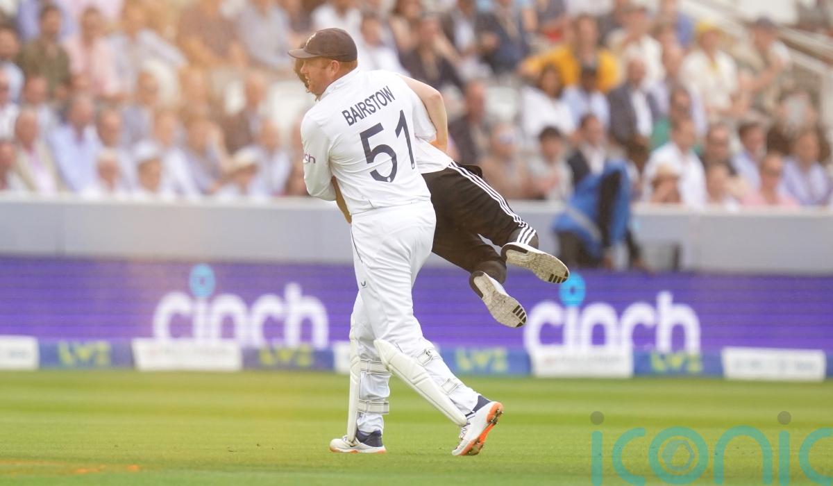 Prime Minister Rishi Sunak praised the “swift hands” of Jonny Bairstow after England’s wicketkeeper carried a Just Stop Oil protester off the Lord’s pitch on the first morning of the second Ashes Test.