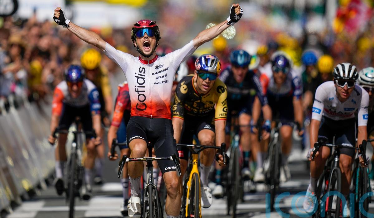 Having watched pre-stage favourite Wout Van Aert use up energy shutting down late attacks from Tom Pidcock and Mattias Skjelmose on the run into town, Lafay waited for the flamme rouge to launch his own move, and then held off the chasing pack at the line as Van Aert slammed his handlebars in frustration.