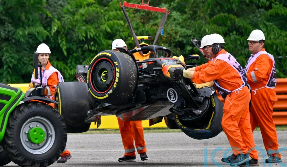 George Russell led the way in the wet conditions for Mercedes at the Hungaroring, 0.359 seconds clear of McLaren’s Oscar Piastri, with Aston Martin’s Lance Stroll third and Lando Norris fourth.