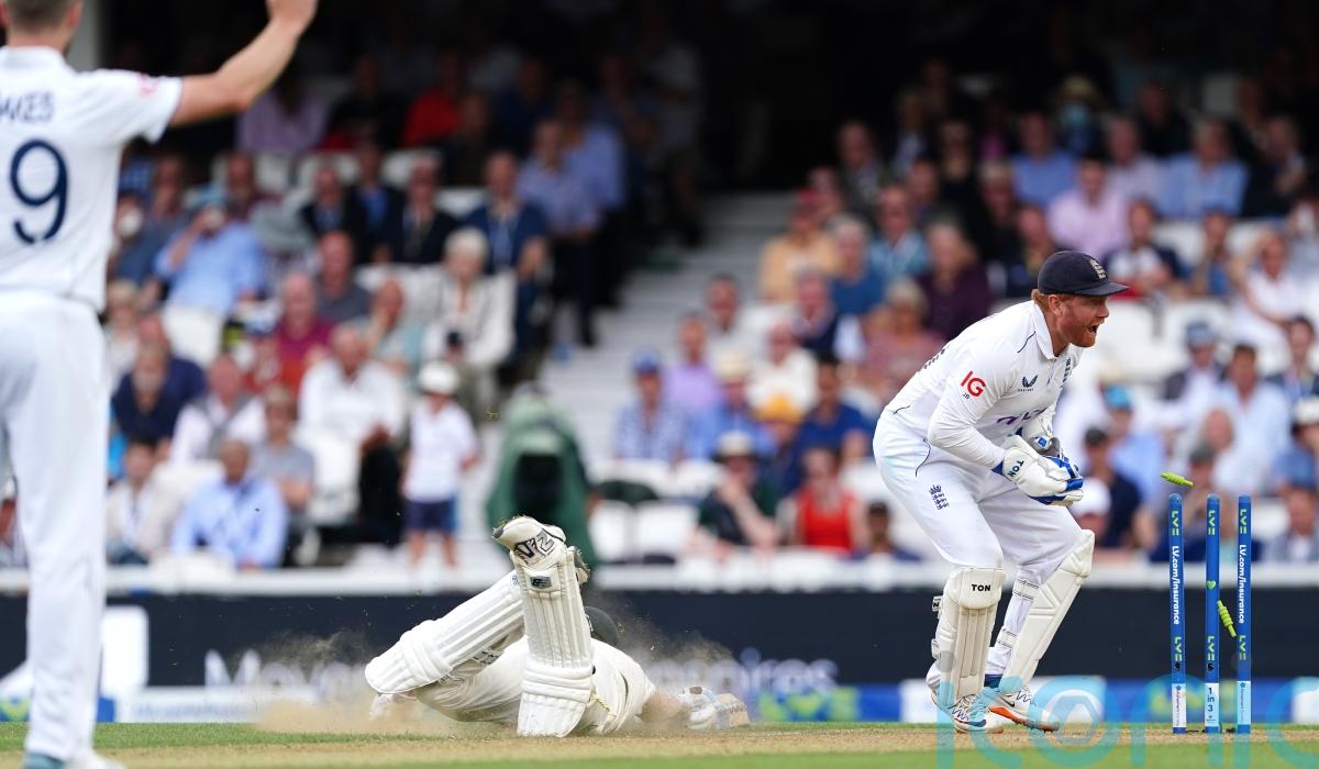 Before a decision had been made Smith started his walk back to the pavilion having seen that he was short of his ground, but replays showed that Bairstow appeared to nudge one of the bails out of its groove a fraction of a second before taking the ball from Ealham’s throw.