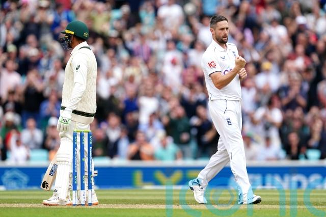 Usman Khawaja has been the most durable and productive batter in the series but fell four short of the 500-run mark when he stayed back to his 1,263rd delivery in the past seven weeks. Woakes dragged the ball back in from middle to leg and pinned the batter on the knee-roll to send him back for 72.