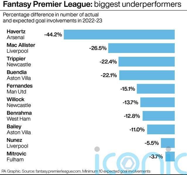Meanwhile, Arsenal’s new signing Kai Havertz underperformed in his final season at Chelsea, having mustered only eight goal involvements from an expected tally of more than 14.