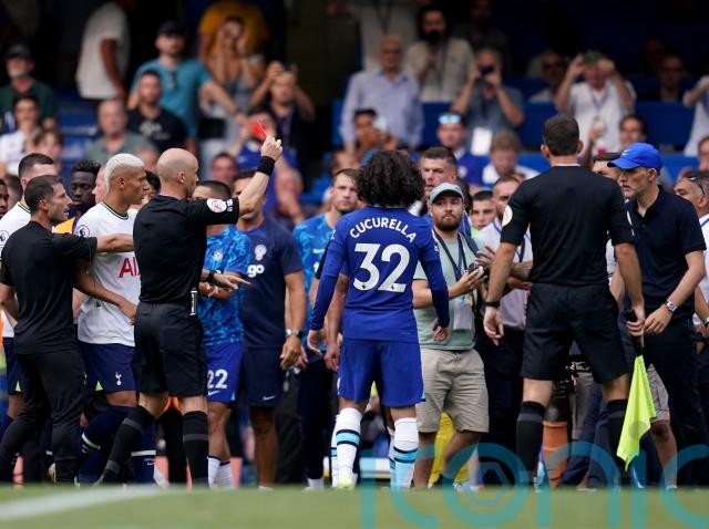 Both managers – Chelsea’s Thomas Tuchel and Tottenham’s Antonio Conte – received red cards from Taylor following an angry exchange at the end of the match.