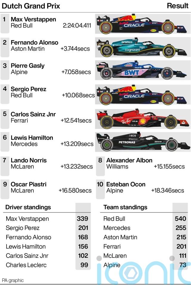 Despite two separate downpours wreaking havoc at the beginning and conclusion of Sunday’s 72-lap race in Zandvoort, Verstappen delivered in front of 105,000 expectant fans to take the chequered flag ahead of Aston Martin’s Fernando Alonso, with Pierre Gasly completing the podium.