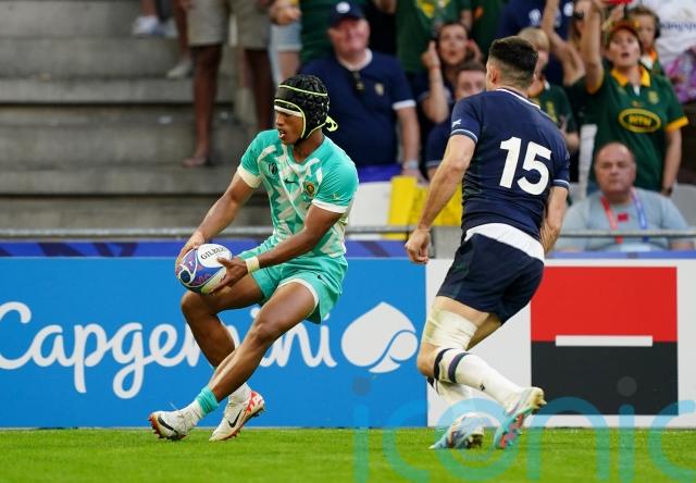 Thing got worse for the Scots four minutes later when Arendse ran in to touch down in the right corner after a lovely cross-field kick from Libbok set him free. With the stand-off having missed three of his five attempts at goal, scrum-half Faf De Klerk took over kicking duties and duly pinged the conversion between the posts.