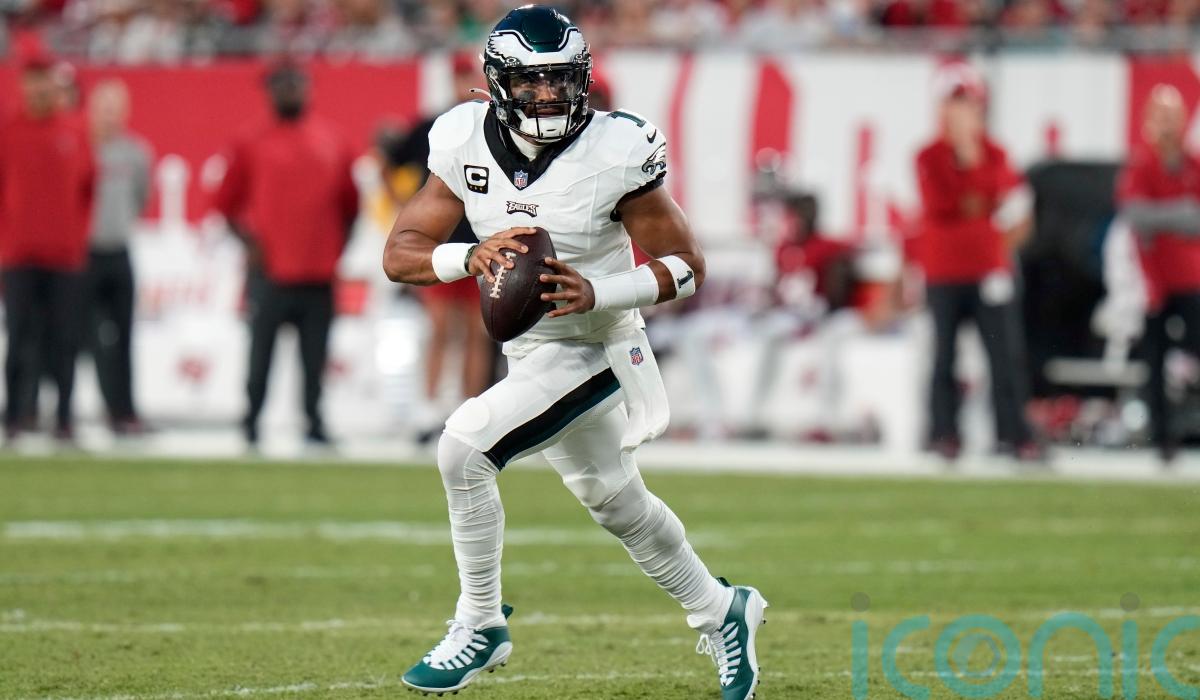 Hurts threw for 277 yards and scored a touchdown while running back D’Andre Swift racked up 130 yards on 16 carries.