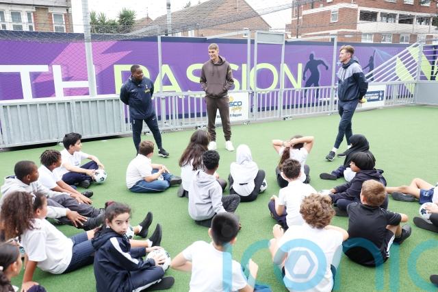 :: Micky van de Ven appeared at a school’s football session delivered by the Club’s Foundation at N17 Arena – a community hub located on the Tottenham Hotspur Stadium campus.