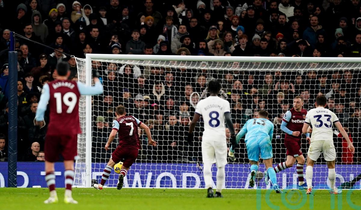 Udogie’s back pass was short and while Vicario dived at the feet of Bowen, Ward-Prowse was first to the loose ball and although his initial effort hit the post, it rolled back for the Hammers midfielder to tap in.