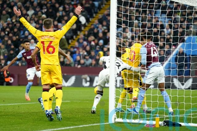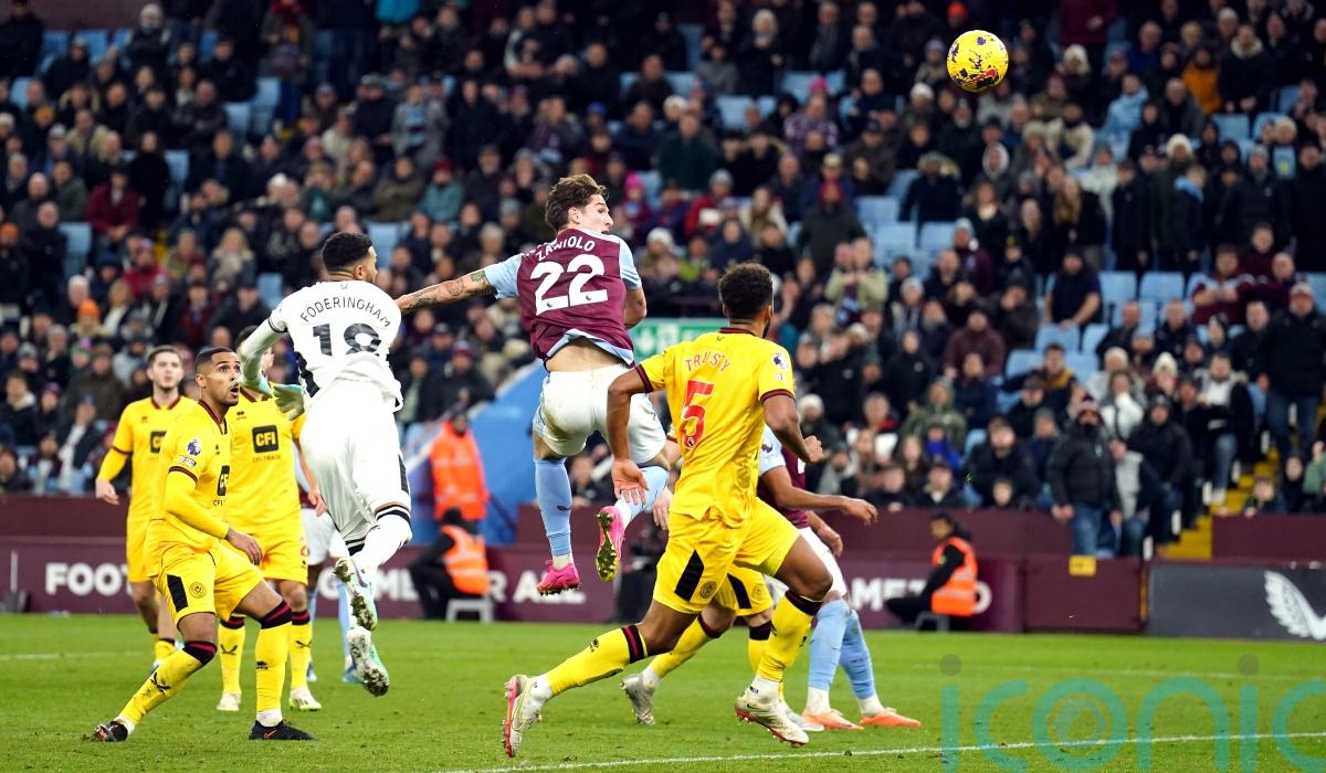 Blades boss Chris Wilder packed a five-man defence to contain the hosts and United lived dangerously early when Ollie Watkins was shoved by Vini Souza as he lurked for Lucas Digne’s cross.