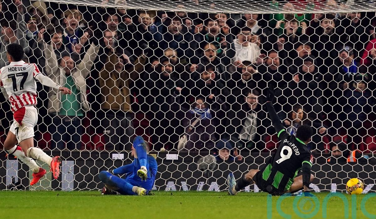 Joao Pedro scored twice late on as Brighton avoided an FA Cup upset at Championship side Stoke with a 4-2 comeback win.