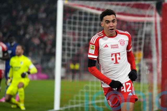 Harry Kane equalled Robert Lewandowski’s half-season Bundesliga goalscoring record with a late strike but it was Jamal Musiala who provided the real cutting edge in Bayern Munich’s 3-0 victory over 10-man Hoffenheim.