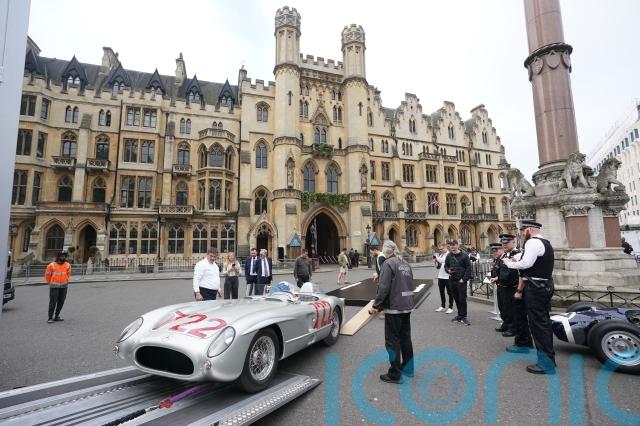 The Mercedes which carried him to victory in Italy was on display outside Westminster Abbey on Wednesday.