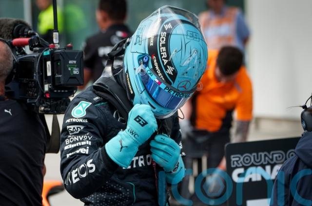 Pole-sitter Russell endured an incident-filled race but saw off team-mate Lewis Hamilton in the closing stages to claim Mercedes’ first podium of the season.