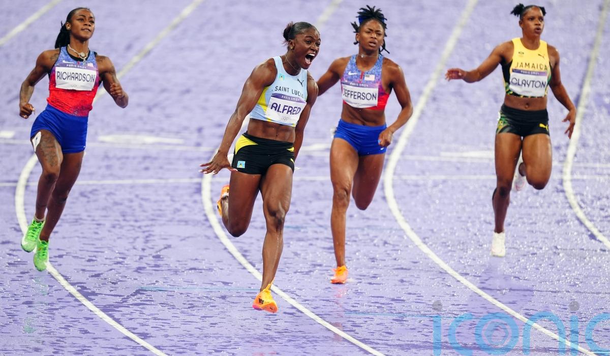 St Lucia’s Julien Alfred stormed to 100 metres gold while Britain’s Daryll Neita was left to reflect on a “super tough” evening after missing out on a first individual Olympic medal by four hundredths of a second.