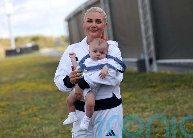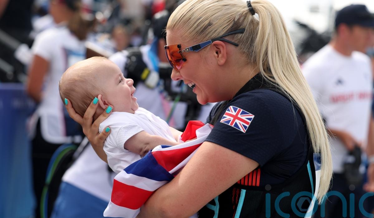 Any disappointment on Rutter’s behalf was swiftly upstaged by the appearance of her family by the side of the range, having embarked on a top-secret visit via a flight to Paris from Heathrow yesterday, and the sight of her clutching her three-month-old baby underscored her remarkable effort in even reaching the Games at all.