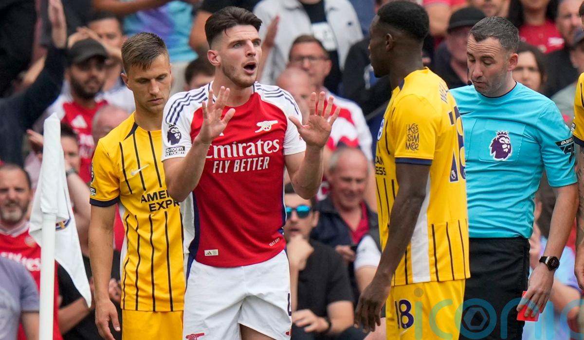 Arsenal looked on course for all three points when Kai Havertz put them ahead in the 38th minute, but Rice received his marching orders 11 minutes later.
