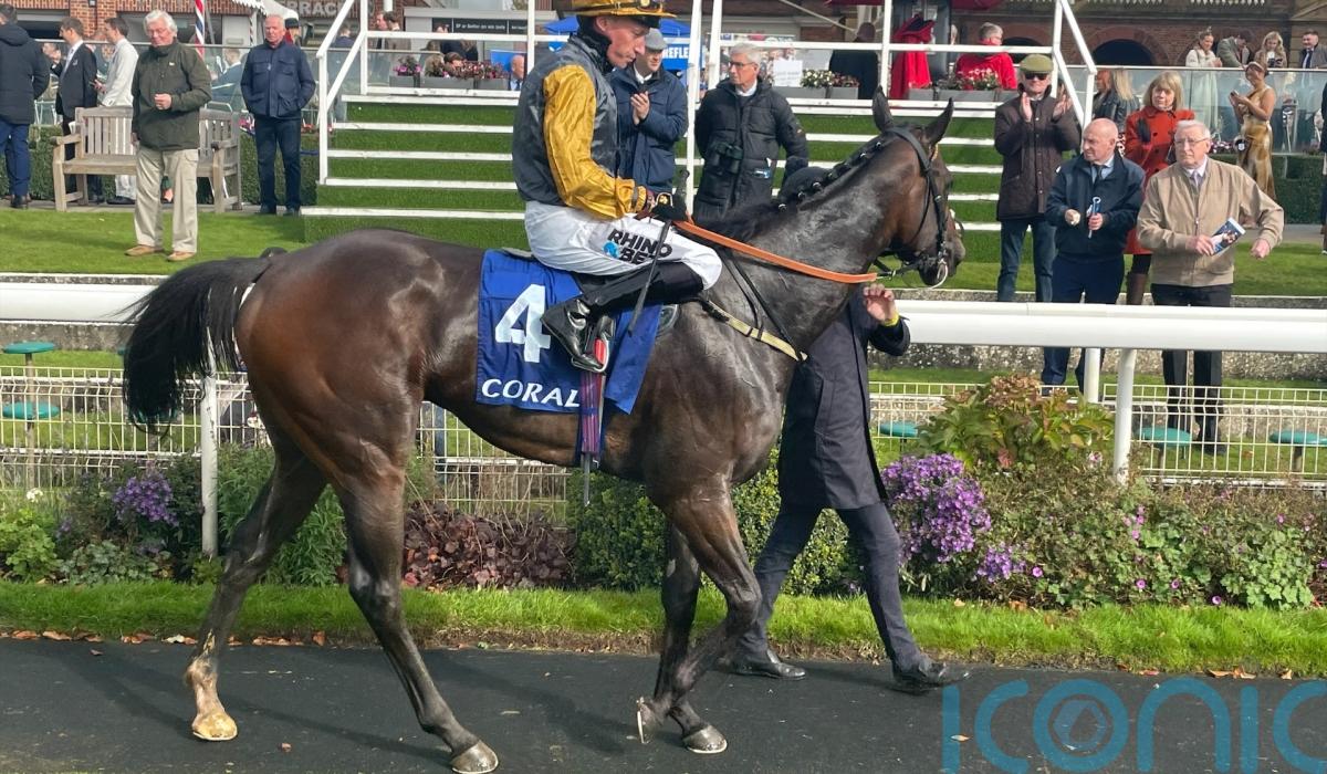 Gibside came to the fore in the driving rain during the Coral “We’re Here For It” Stayers Handicap to win by five lengths for Tim Easterby at a price of 11-1.