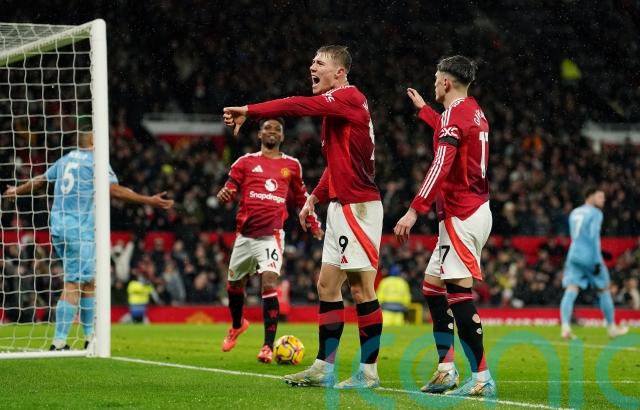 The hosts kept their foot on the gas and levelled in the 18th minute, with Hojlund turning home after Alejandro Garnacho’s attempt from a Manuel Ugarte ball was smothered by the Forest goalkeeper.