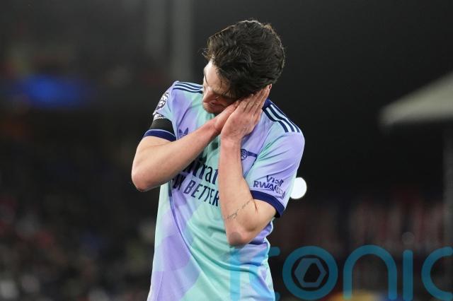 Saka was filmed leaving Selhurst Park on crutches, souring what had been a comprehensive second win over the Eagles in four days after Gabriel Jesus’ hat-trick secured Arsenal passage to the Carabao Cup semi-finals on Wednesday night.