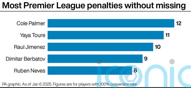 – Cole Palmer has the best Premier League penalty record, 12 out of 12 after his own double in Chelsea’s 4-3 win over Tottenham last month.