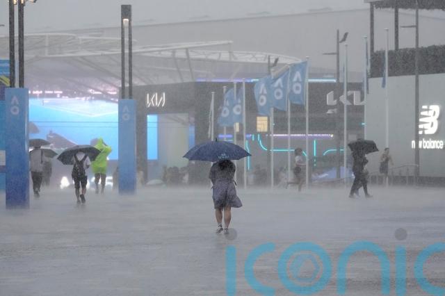 Less than an hour of play was possible on the outside courts before a huge thunderstorm hit Melbourne Park, sending spectators running for cover and causing a delay of more than six hours.