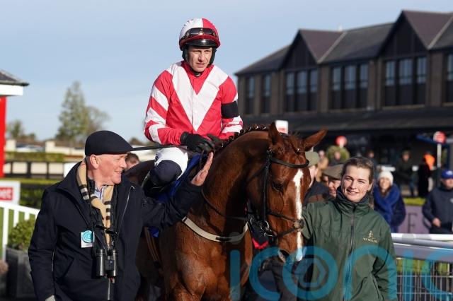 Down Memory Lane, last seen finishing third in the Grade One Henry VIII Novices’ Chase at Sandown, was always Lecky Watson’s nearest pursuer and looked a major threat jumping the second fence from home.