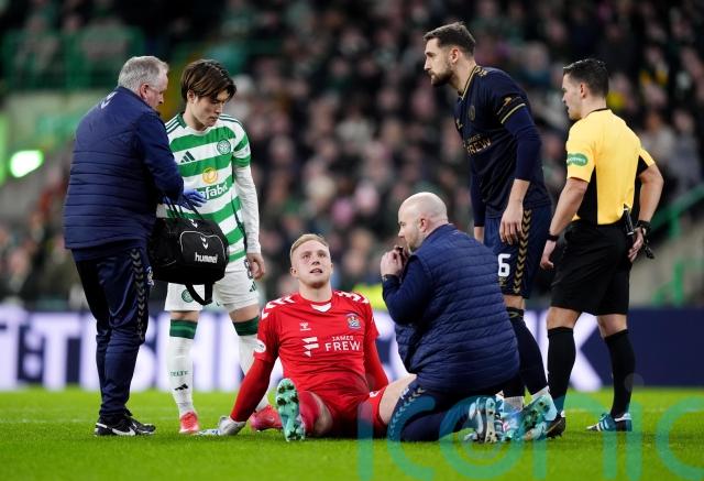 Killie keeper Robby McCrorie was injured with less than a minute played and had to be replaced by Kieran O’Hara, who was beaten in the 12th minute by Celtic skipper Callum McGregor’s drive from distance.